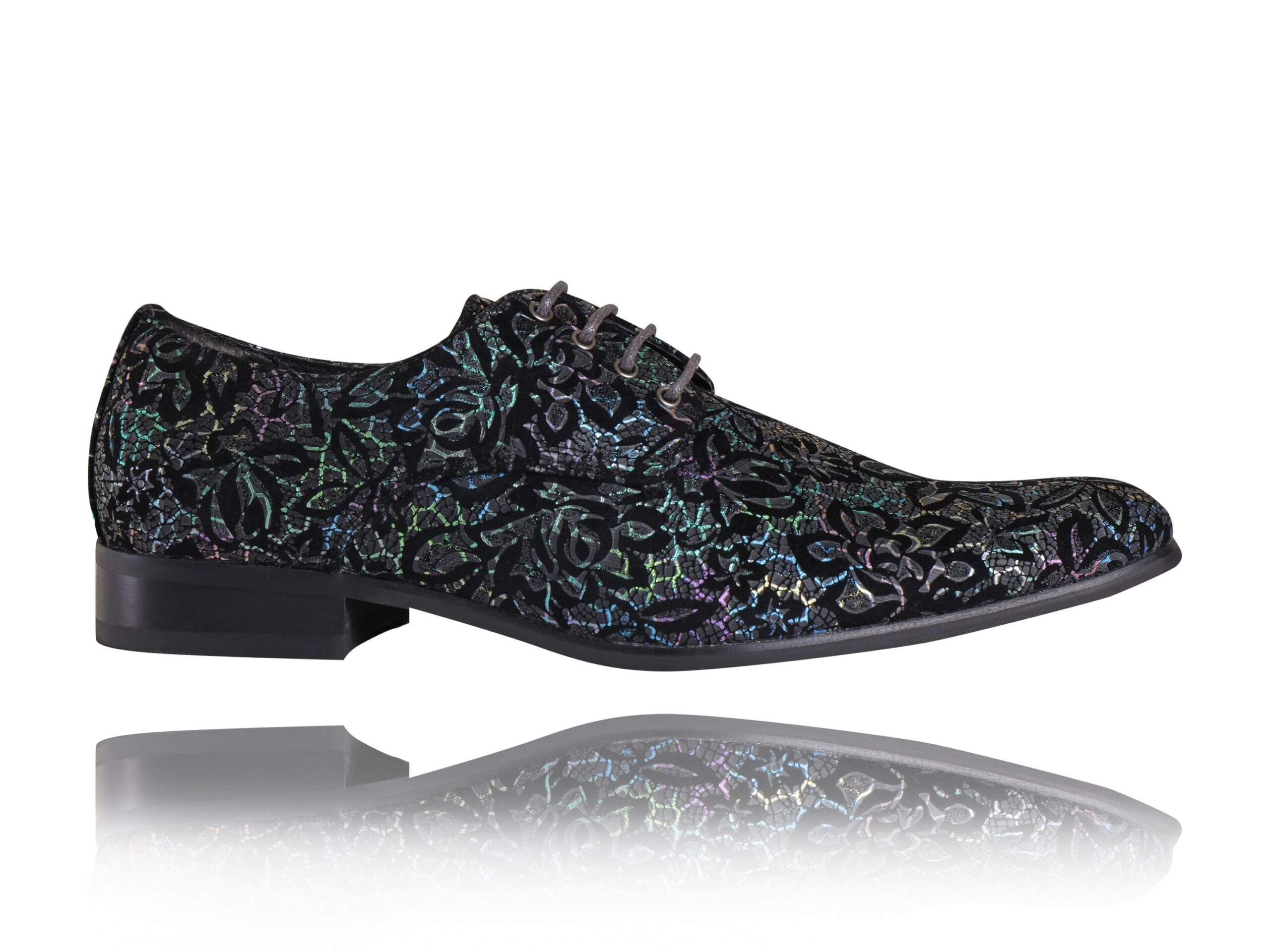 Black Fusion Black Fusion, herenschoenen met een zwart kleurexplosie ontwerp van Lureaux. Een unieke combinatie van felle kleuren op een zwarte achtergrond. Net, chique, en bijzonder, deze schoenen zijn echte eye-catchers voor mannen die stijl waarderen.